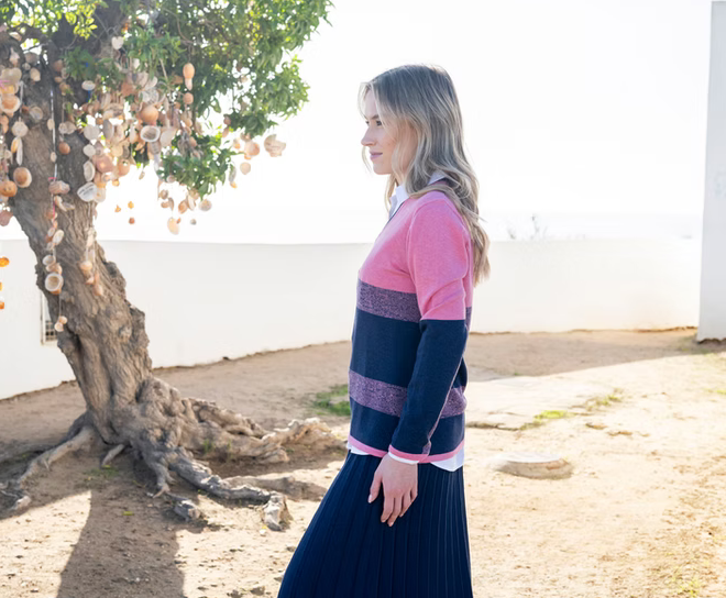 Super soft 100% cotton classic fit v neck sweater with colour block & twisted yarn on main body