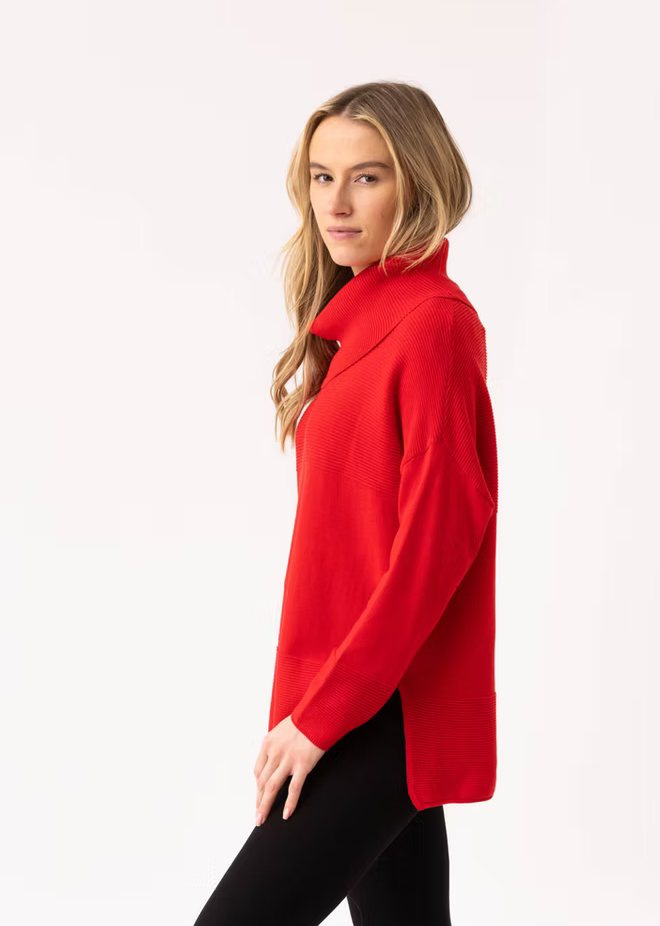 Super soft 100% cotton oversized fit cowl neck sweater with texture knit pattern