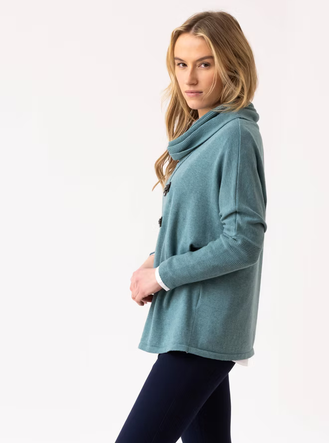 Super soft 100% cotton oversized fit cowl neck sweater with PU buckle detail