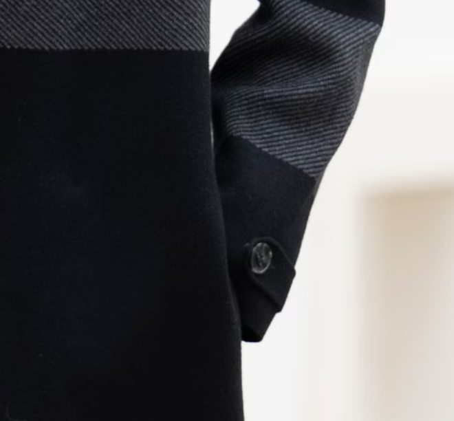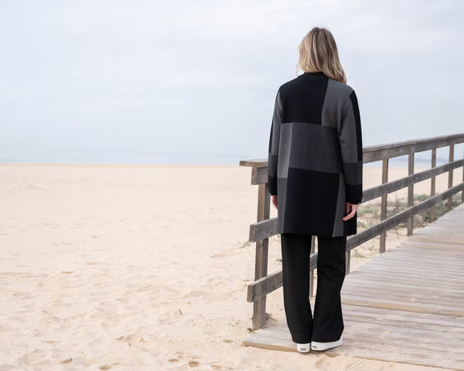 Cotton rich oversized longer length button front shacket with two colour contrast pattern jacquard knit